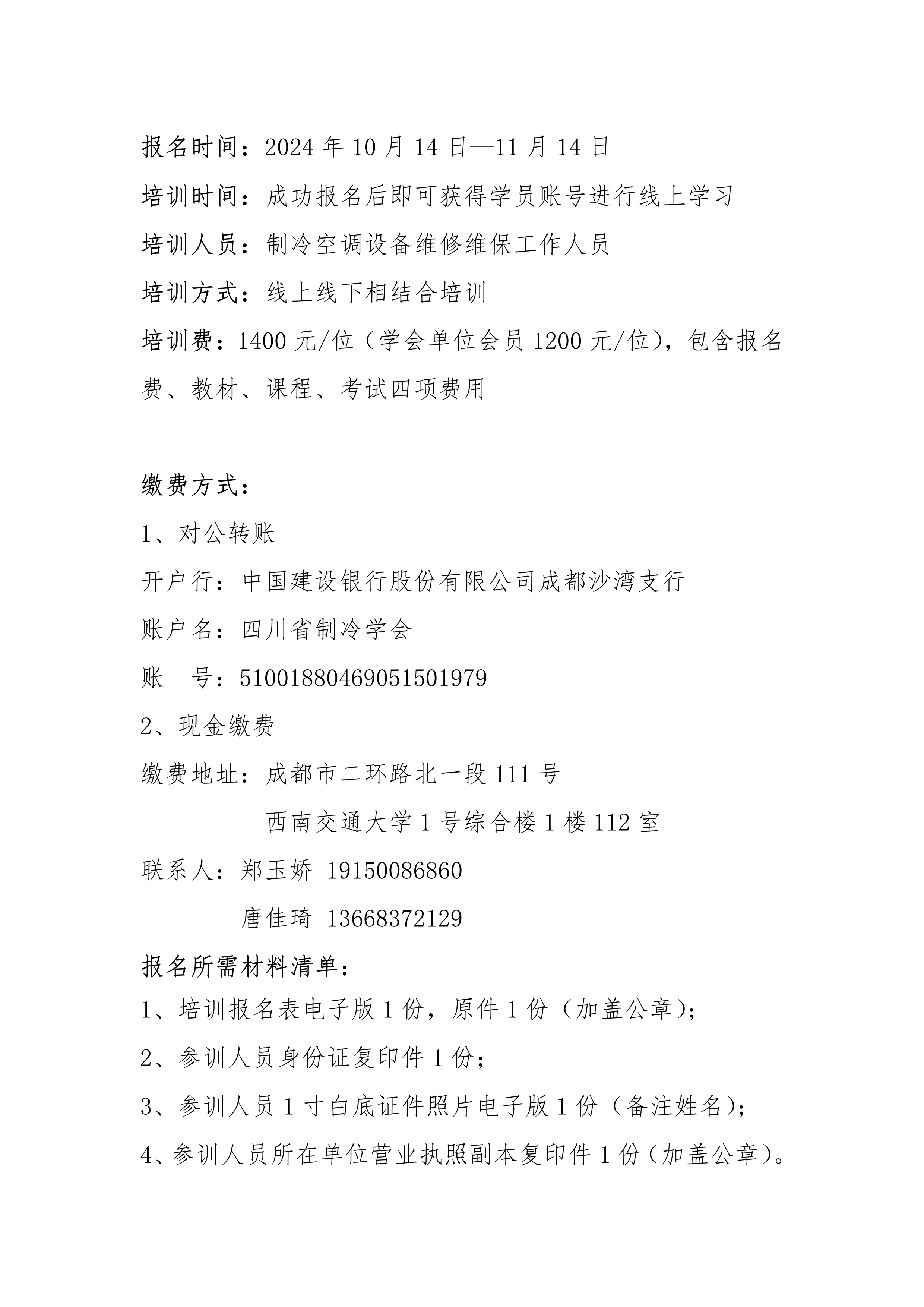 關于舉辦“第十四期四川省中央空調維修維保技術人員培訓”的通知