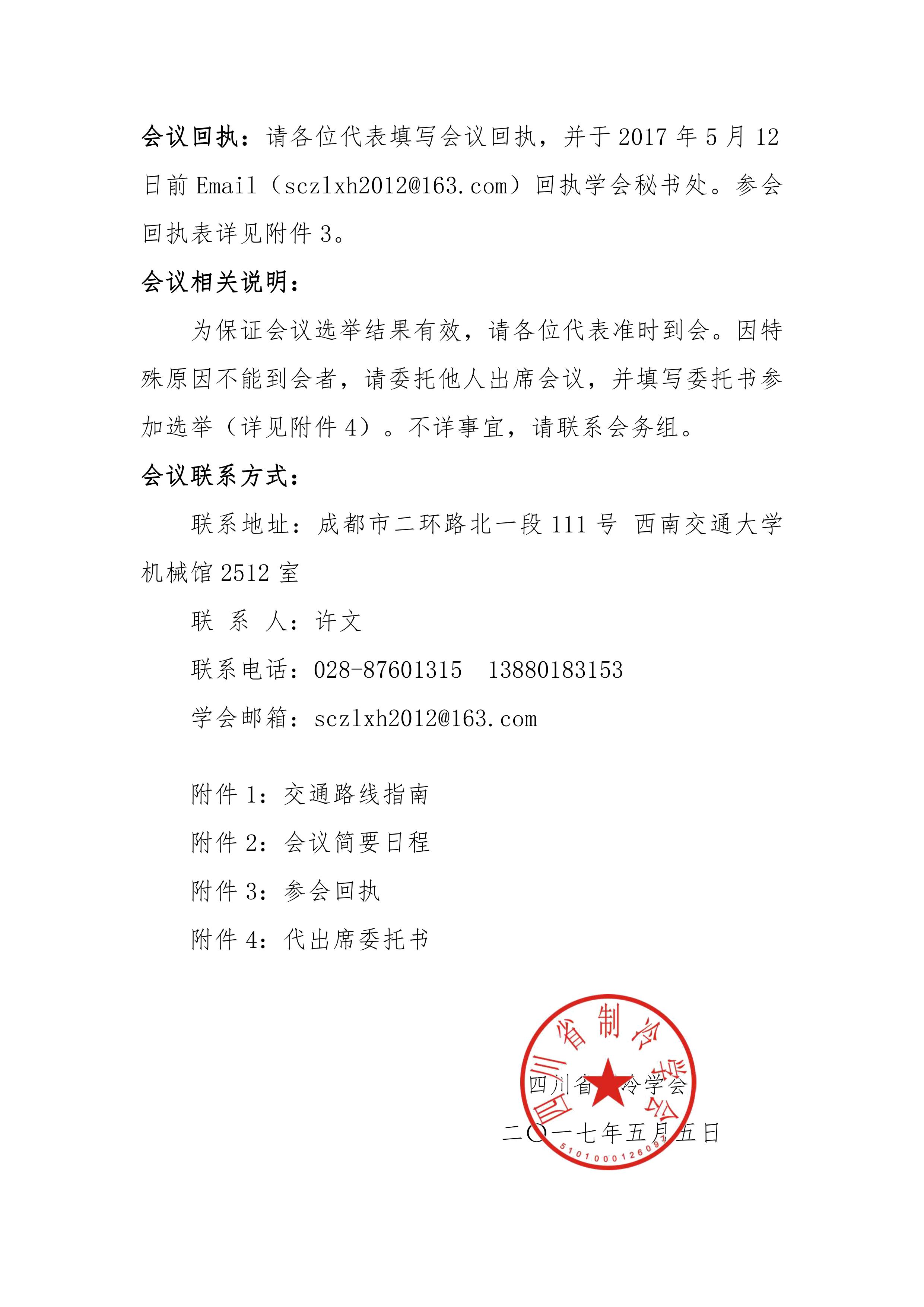 關于出席四川省制冷學會第七次會員代表大會的通知